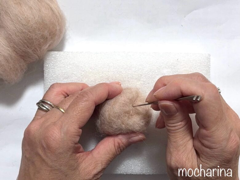 - 芯材を羊毛フェルトで包み、ニードル針で刺す