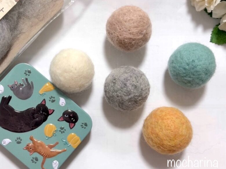 特にもふもふした羊毛フェルト作品が大好きです。そこで100均の材料を使って鈴入りの羊毛フェルトボールを作りました。
