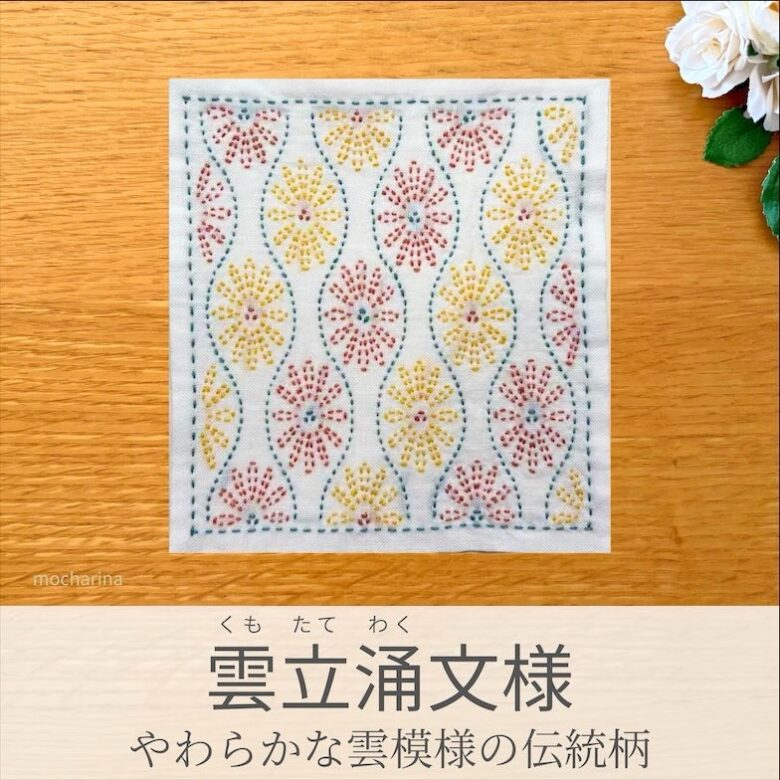 この記事では、セリア(Seria)の刺し子ふきん「雲立涌文様(くもたてわくもんよう)」の作り方をご紹介します。